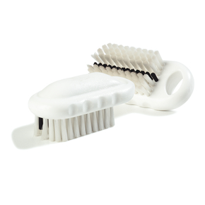 • new improved brush designed to promote vital cleansing of hands for foodservice personnel; stiffer center bristles offer a more thorough cleaning under fingernails and longer bristles along sides clean fingers top and bottom; works better tha